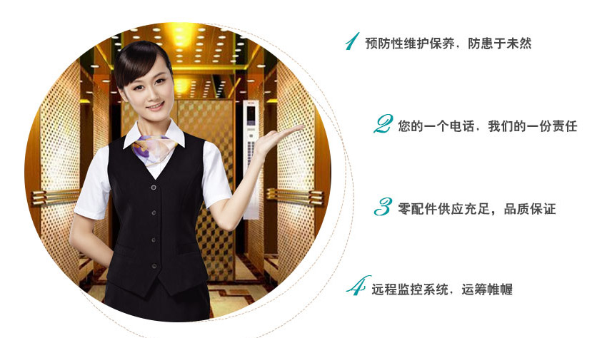 不仅如此,河南博安电梯在河南设有二十四小时全天候维修服务中心,并开通全国免费服务热线:0371-55910957,其意义在于:公司一直为了用户不断完善自我——"用户至上,服务第一"是我们永恒的宗旨。