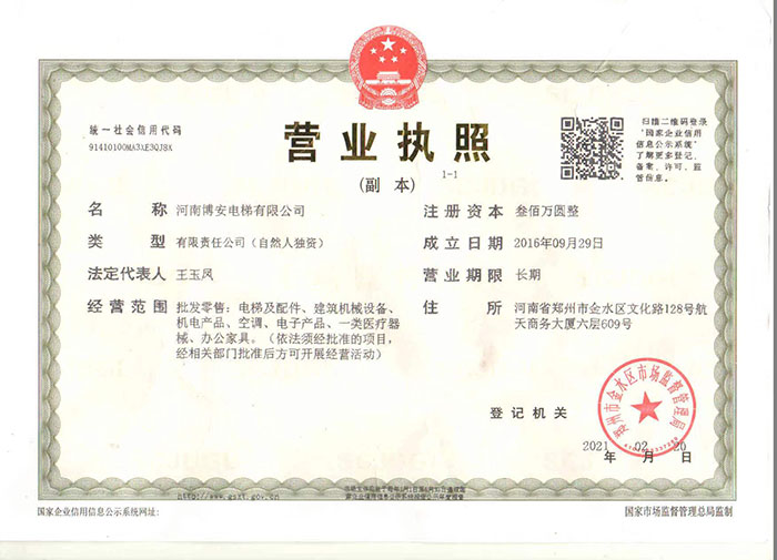 河南博安电梯有限公司 是一家从事电梯销售的现代化专业电梯公司。公司主要经营乘客电梯、载货电梯、观光电梯、医用电梯、自动扶梯、自动人行道、杂物梯等各种电梯及配件。